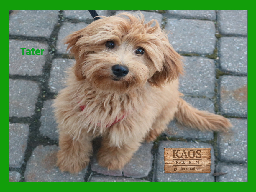 Tater is a petite/mini goldendoodle with a beautiful copper colored wavy coat! Tater's parents are Marta and Chesney.